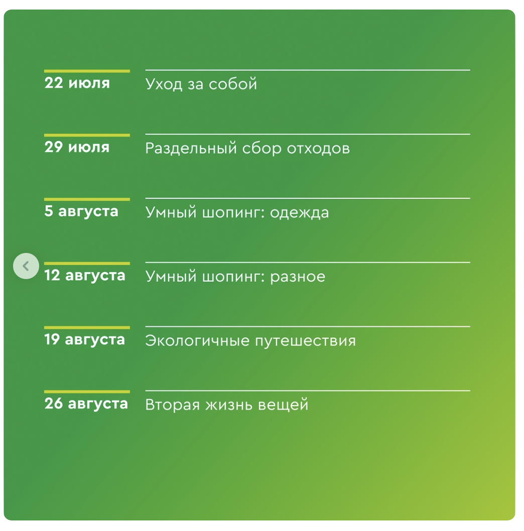 Каждую неделю участники получают новые видео- и текстовые материалы, практические задания и вдохновляющие интервью с экспертами и лидерами мнений в области устойчивого развития. Благодаря марафону формируется активное сообщество сотрудников, которые поддерживают друг друга на пути к ответственному и зелёному будущему.